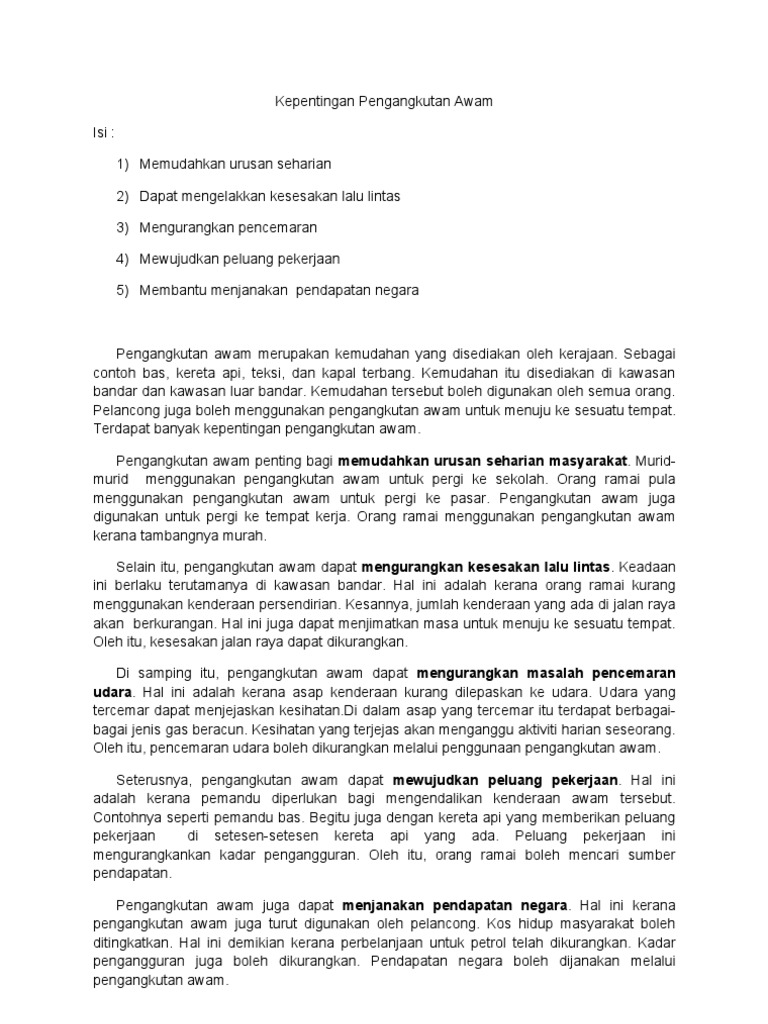 Kepentingan Pengangkutan Awam Pdf